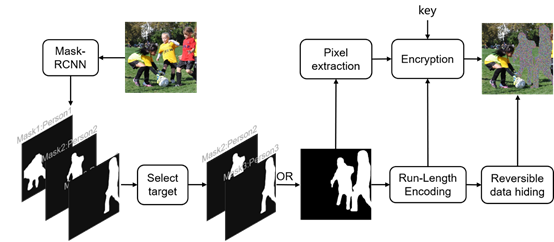 该论文是在raybet官网陈中副教授的指导下完成,雷竞技raybet登录入口为唯一署名单位。论文核心理论是:结合实例分割、可逆隐写技术和超混沌映射,提出一种图像感兴趣区域(ROI)加密方案,在高效选择并加密特定区域的同时,还解决了ROI位置信息在传输过程中的安全问题。首先,该论文提出了一种新颖的4D超混沌系统,并结合超混沌系统设计了一种新的图像加密算法。该算法采用分裂随机交换排列方法对图像进行排列,并结合S盒对图像进行扩散。为了提高该加密算法的扩散性,设计了交叉随机扩散方法对图像进行再次扩散。然后,提出了一种图像ROI加密方案。该方案能够自动识别图像中不规则的隐私目标并对其进行加密。为了保证感兴趣区域位置信息在传输过程中的安全性,该方案利用游程编码技术对隐私目标的位置信息进行压缩,利用基于直方图移位的可逆隐写术将压缩数据嵌入到密文图像中。实验结果和安全分析明确表明,本文提出的图像加密算法对多种攻击表现出强大的抵抗力,此外,设计的图像ROI加密方案有效保护了多样化的隐私目标。